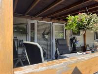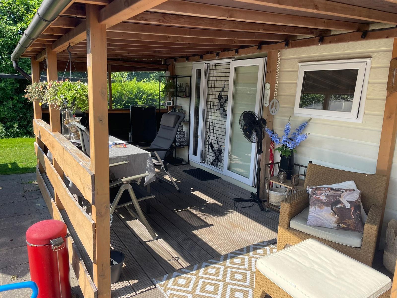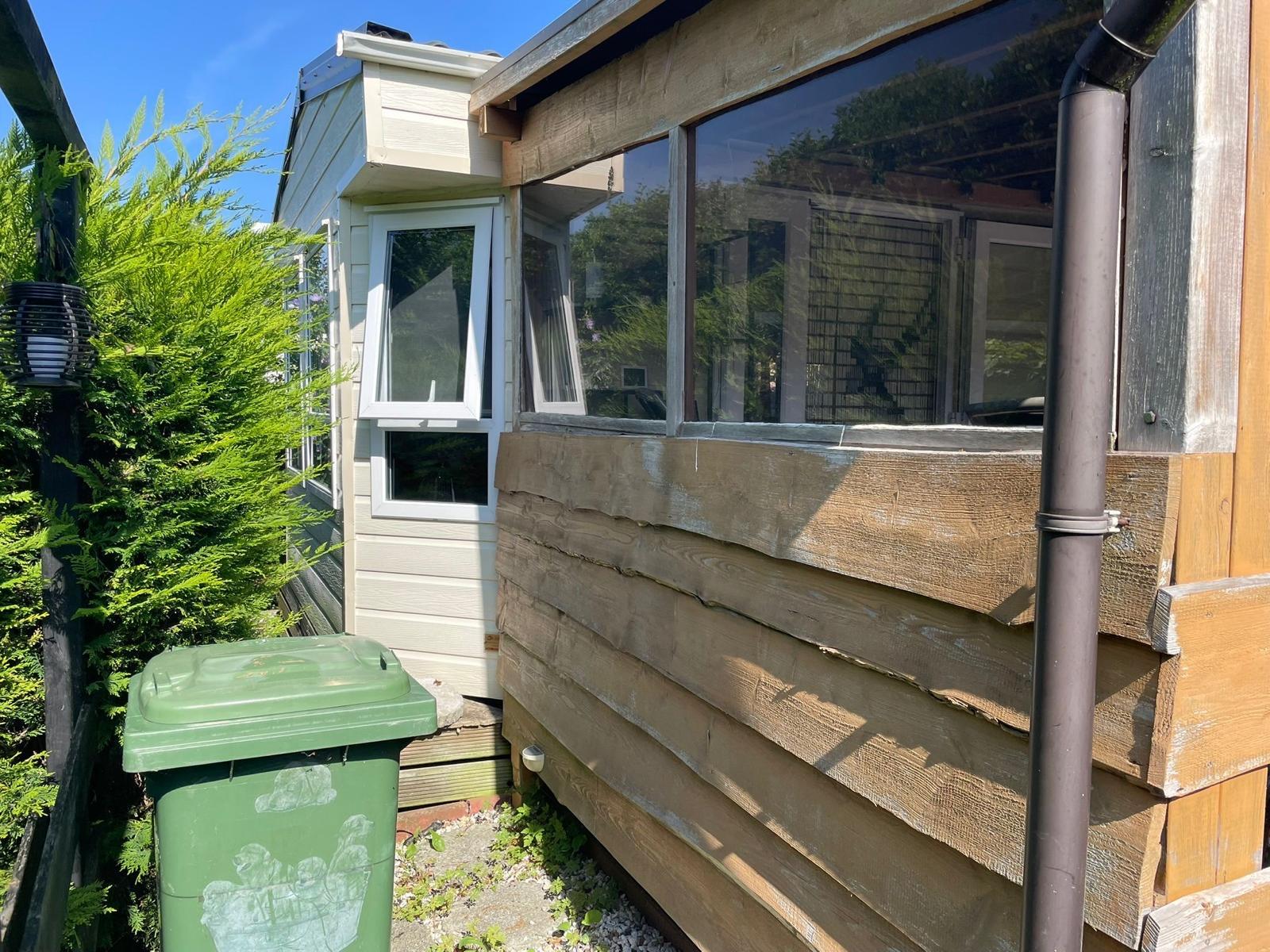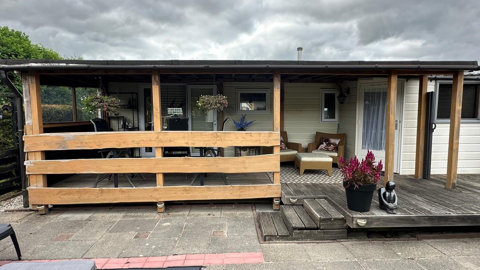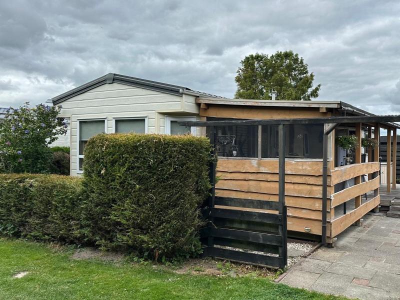 Dieses synthetische Chalet (10,00 x 3,70 m) steht ab sofort auf Camping '73 in Nieuwe Niedorp, Nordholland, zum Verkauf! Ein geräumiges Chalet mit Anbau und Vordach, gelegen an einem schönen, ruhigen Platz im hinteren Teil des Campingplatzes. Der Anbau neben der Eingangstür dient als Vorraum. Im Winter dient er auch als Zuglufttür. In diesem Chalet ist auch die Waschmaschine dort installiert.