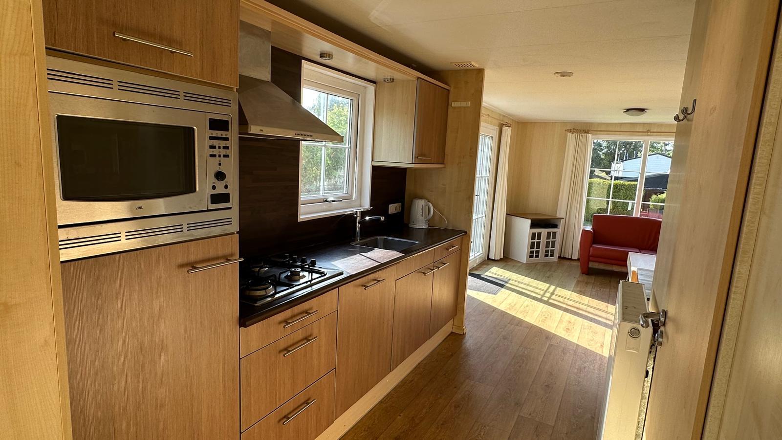 Die Küche ist mit einem 4-Flammen-Gasherd mit Dunstabzugshaube, Kühlschrank, Mikrowelle, Spüle, Wasserkocher, Geschirrspüler und viel Stauraum ausgestattet.