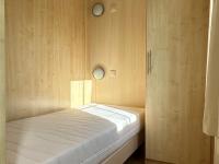 Das Hauptschlafzimmer verfügt über ein Doppelbett mit Einbauschränken und einen großen, raumhohen Kleiderschrank mit Schiebetüren und Ganzkörperspiegel. Das zweite Schlafzimmer hat ein Einzelbett und einen Kleiderschrank.