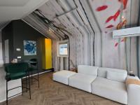 Das Wohnzimmer ist das Herzstück des „Hauses“, ein schöner Ort, um sich zu entspannen oder mit Familie und Freunden zu genießen. Die offene Küche ist mit verschiedenen Einbaugeräten ausgestattet und verfügt über eine gemütliche Bar, perfekt für das Frühstück oder ein gutes Glas Wein am Ende des Tages.
