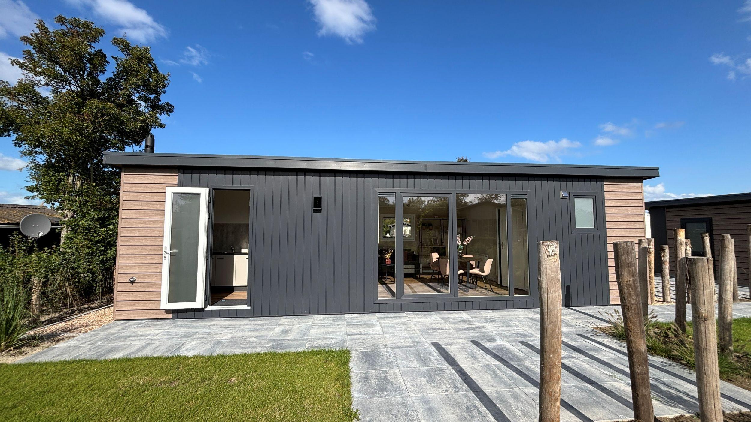 Genau wie das Chalet ist auch das Gartenhaus maßgeschneidert und im gleichen Stil und mit den gleichen Materialien gebaut. Es ist gut isoliert und mit einem Waschmaschinenanschluss ausgestattet. Der Garten wurde von Braber Groenvoorziening angelegt, einem Spezialisten für Chalet-Gärten.