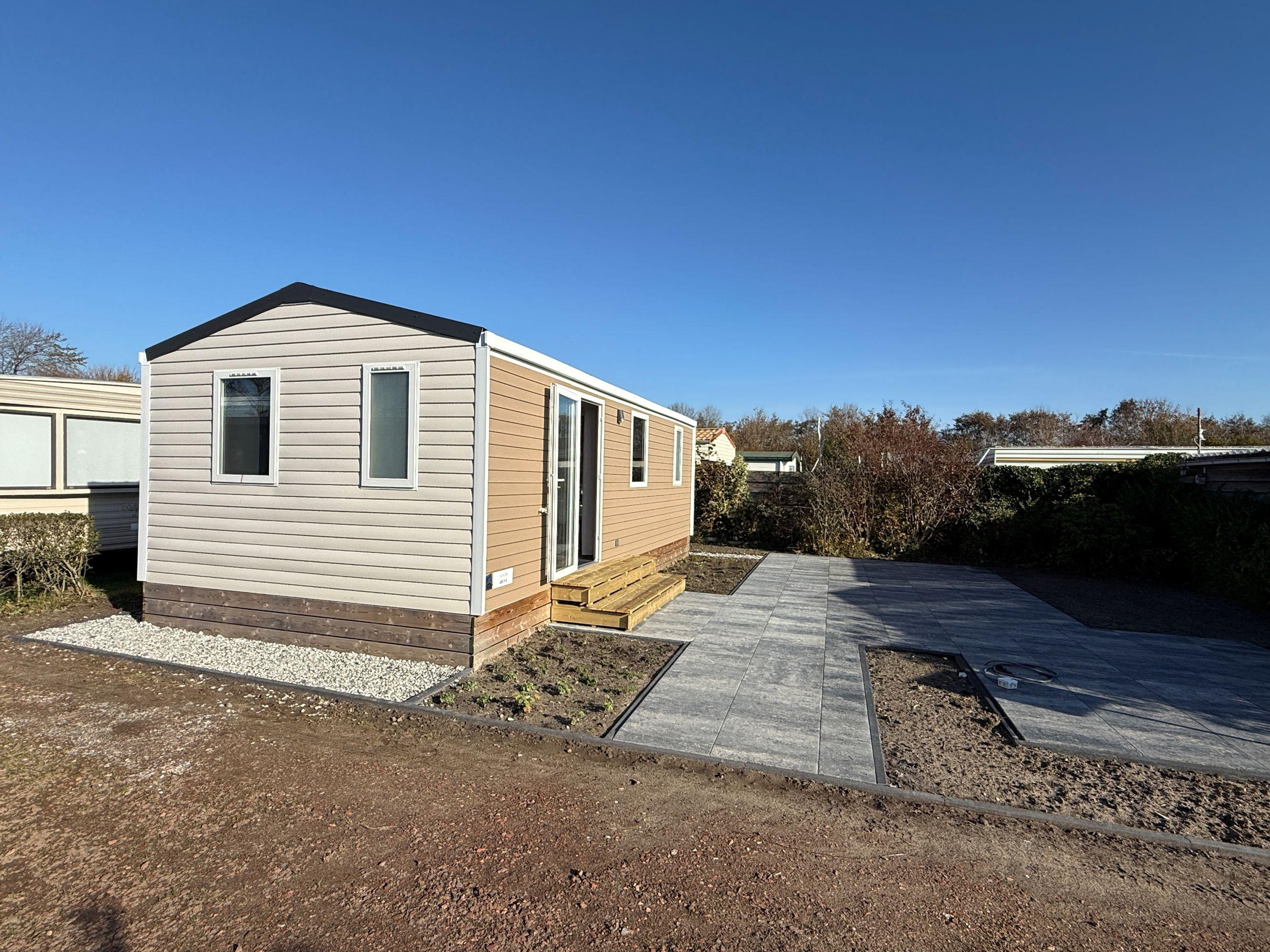 Auf Parzelle 76 wurde ein neues Mobilheim vom Anbieter Zeeuwse Chalets aufgestellt. Da die Größe des Grundstücks immer genau berücksichtigt werden muss, passt das Mobilheim IRM Azalée hier am besten.