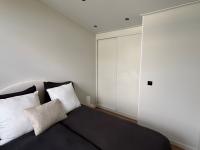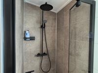 Das großzügige Elternschlafzimmer erstreckt sich über die gesamte Breite des Chalets und bietet somit Platz für geräumige Einbauschränke. Auch das zweite Schlafzimmer ist ausreichend groß, die luxuriösen Boxspringbetten in beiden Schlafzimmern gehören zur Einrichtung. Das Badezimmer ist praktisch eingerichtet mit einer geräumigen Duschkabine und einem schönen Waschtisch sowie einer Toilette.