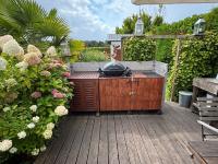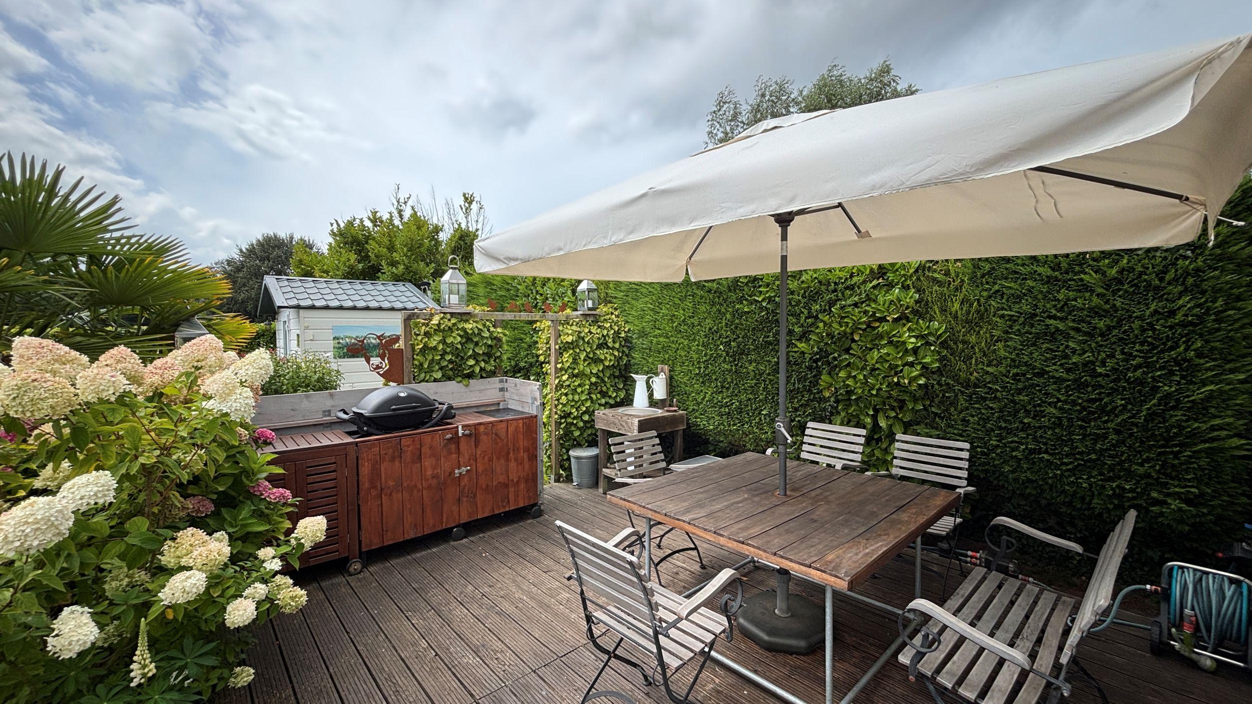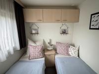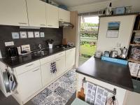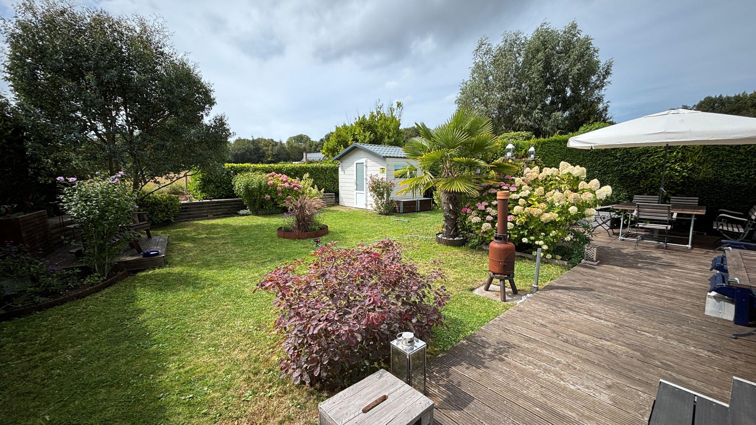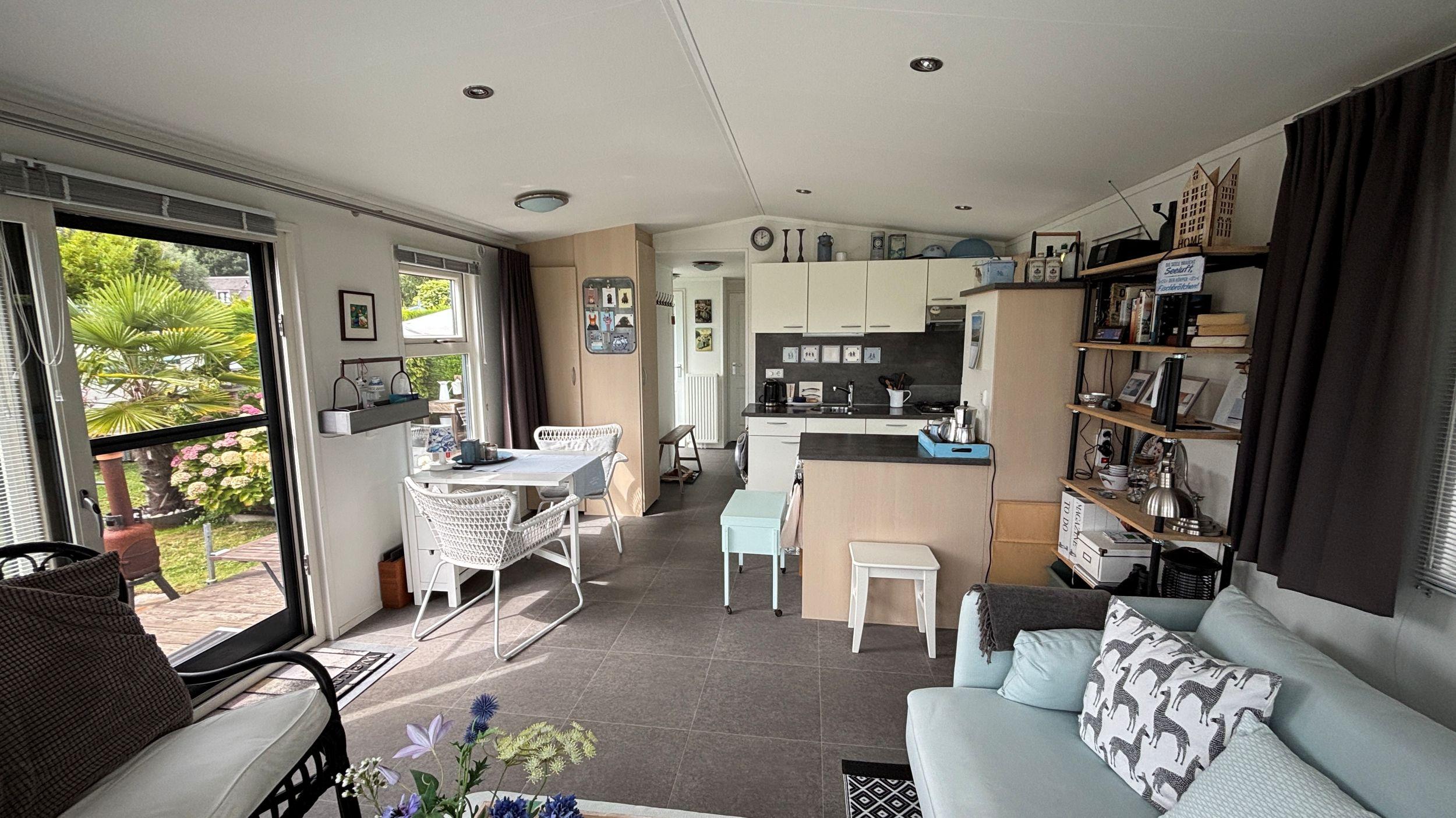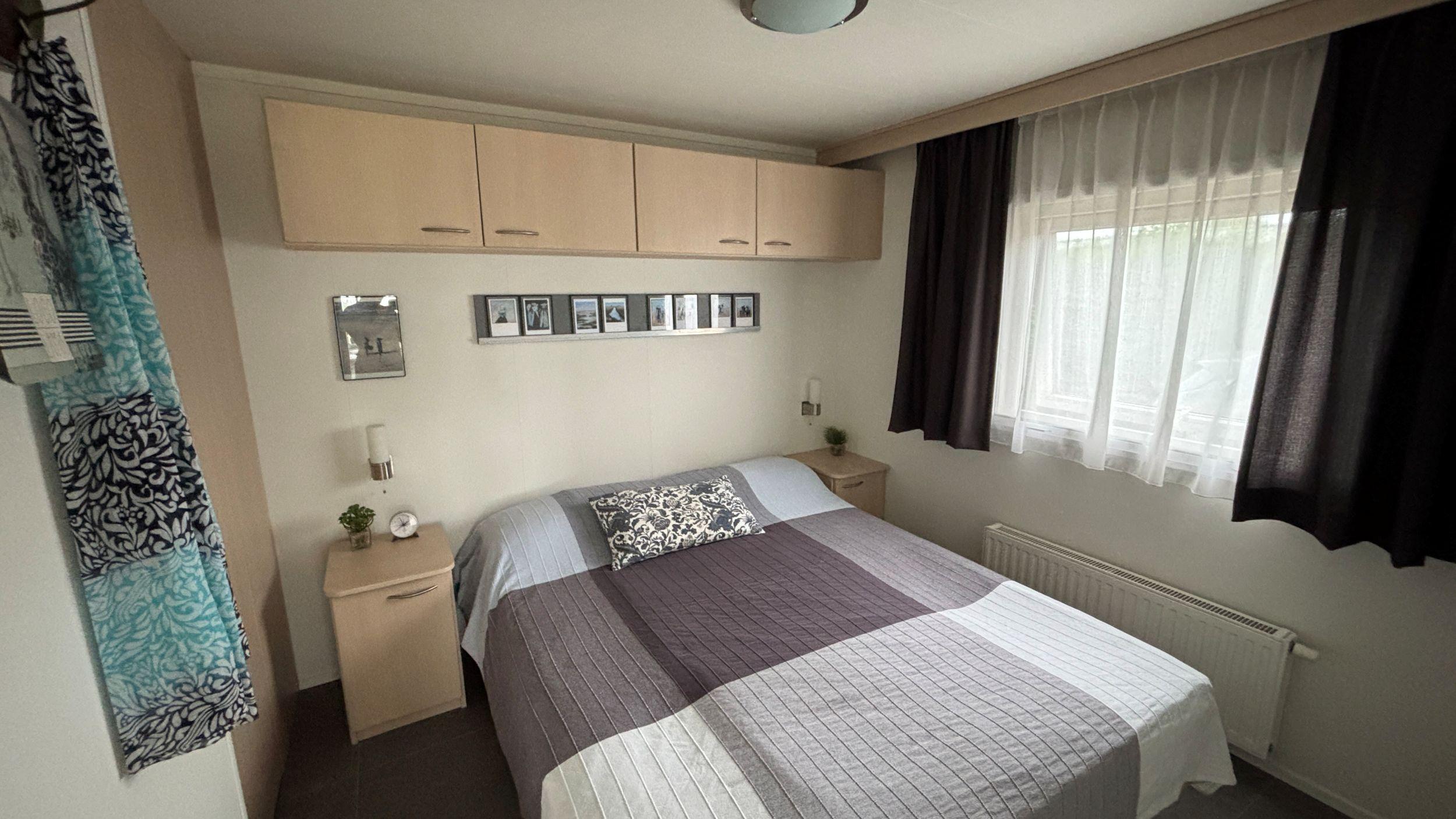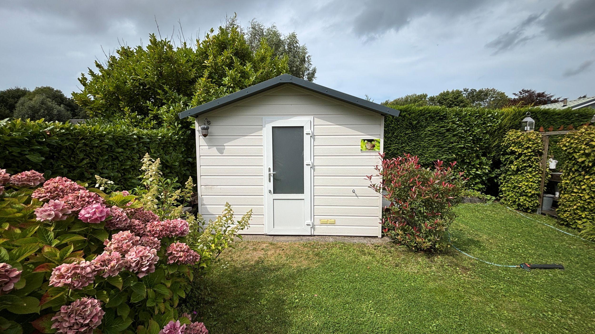 Das Chalet verfügt über ein geräumiges Wohnzimmer mit einer voll ausgestatteten Küche. Durch den Flur neben der Küche gelangen Sie in eines der geräumigen Schlafzimmer mit Doppelbett. Außerdem gibt es noch ein zweites Schlafzimmer mit Doppelbett im Chalet. Im Chalet finden Sie das Badezimmer mit Dusche und Waschbecken. Die Toilette befindet sich in einem separaten Raum. Im Garten steht ein praktischer Schuppen, in dem Sie Ihre Fahrräder unterstellen können. Es gibt auch eine schöne Außenküche mit Grill.