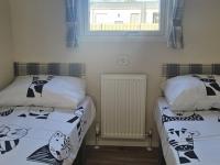 Das geräumige und attraktive Chalet (11,00 x 3,70) verfügt über 2 Schlafzimmer, ein Badezimmer mit Dusche, WC und Waschbecken, eine offene Küche und ein Wohnzimmer. Das Haus wird mit einer Zentralheizung beheizt. Die Möbel im Wohnzimmer auf den Fotos sind ein Hinweis darauf, was möglich ist. Diese sind nicht im Verkauf enthalten. Die Betten und Vorhänge im Wohnzimmer und in den Schlafzimmern sind im Verkauf enthalten.