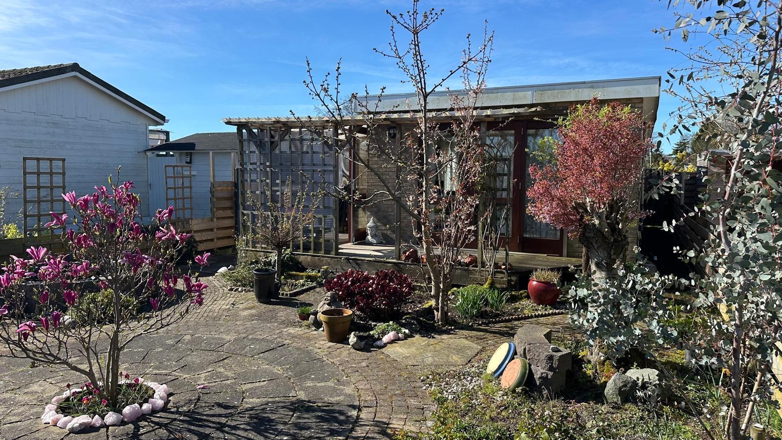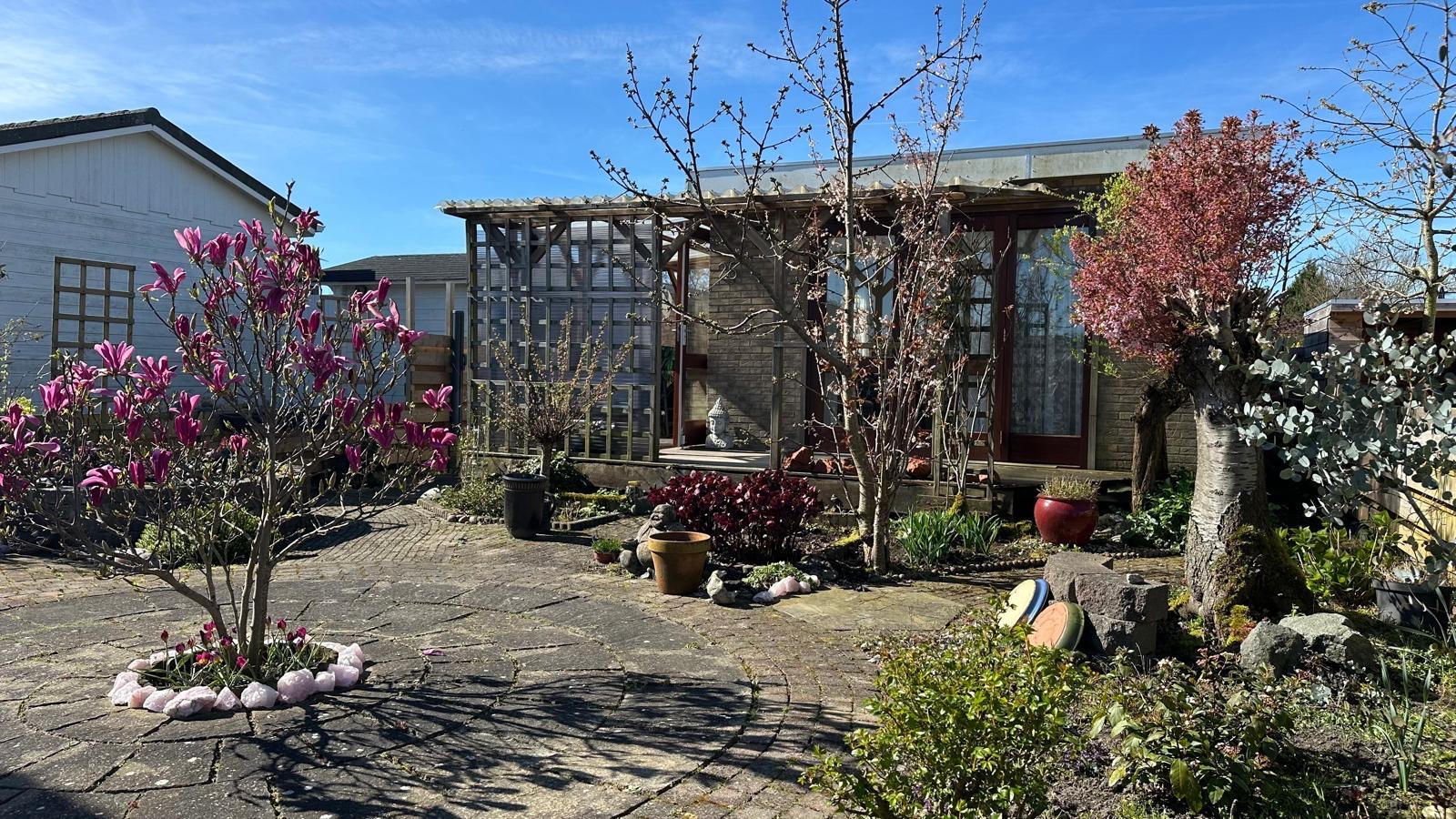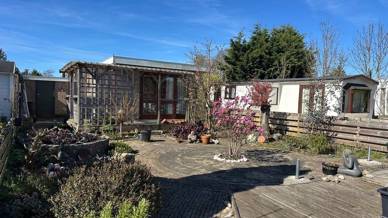 Rondom het chalet ligt een fraai aangelegde tuin met meerdere zitplekken, waar u in alle rust, privacy en zon kunt genieten van het buitenleven. De overkapte veranda vormt een heerlijke aanvulling en biedt ruimte voor een gezellig zitje, hier zit u beschut tegen zon en regen, waardoor u al vroeg in het voorjaar en tot laat in het najaar aangenaam buiten kunt verblijven. Of het nu gaat om een rustige ochtend met een kop koffie of een lange zomeravond, deze plek biedt alles voor optimaal ontspannen in een groene en rustige omgeving.