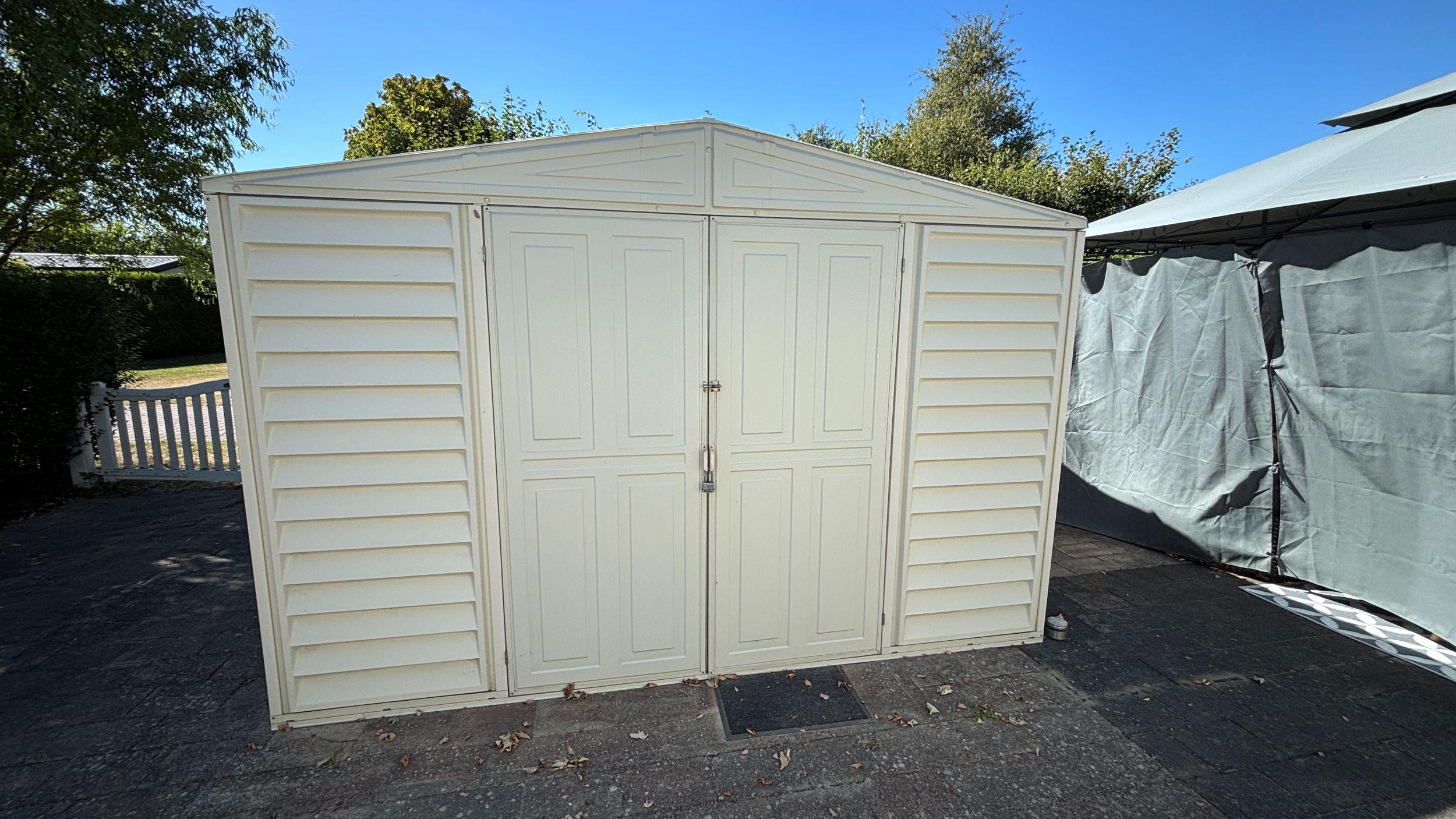 De tuin is keurig onderhouden, er staat nog een schuurtje en is er plaats om de auto te parkeren.