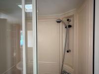 In de badkamer vind je een douche, wastafel en toilet. De keuken is in tweeën gedeeld, aan de ene kant vind je de hoekopstelling met vierpits gaskookplaat en oven, aan de andere kant de koelkast, wasbak en werkblad.