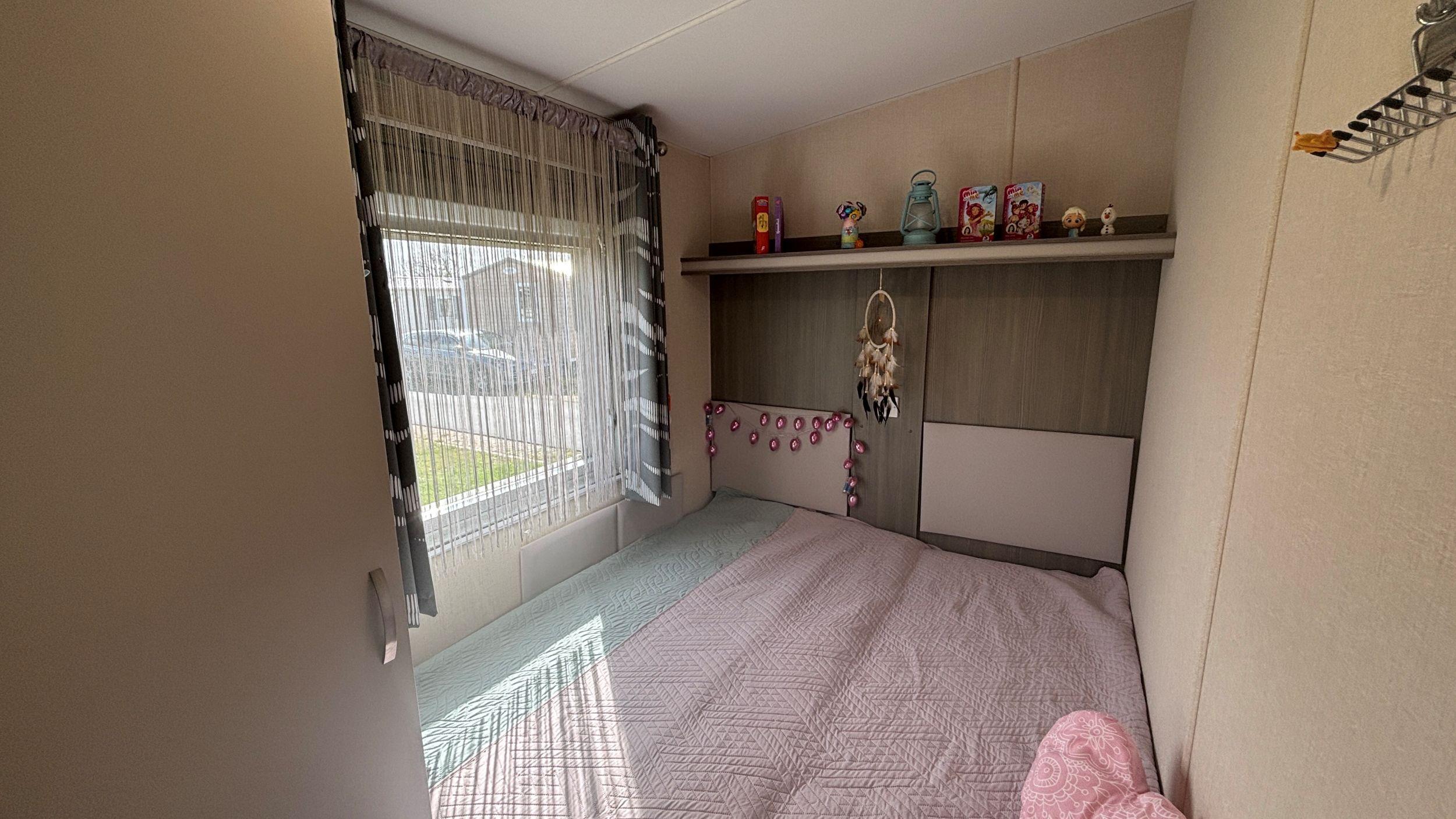 Het chalet heeft een praktische middenkamer indeling met maar liefst drie slaapkamers. De ouderslaapkamer heeft naast veel kastruimte ook een badkamer ensuite. De living heeft een fijne L-vormige bank en ruime eethoek. De U-keuken is heel compleet met een elektrische oven, magnetron, vaatwasser en zelfs een wasmachine. De tweede badkamer en het toilet bevinden zich aan de zijde van de twee andere slaapkamers.