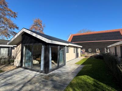 De buitenbekleding van het chalet is van Waxedwood, wat bijzonder mooi oogt. Waxedwood is ontwikkeld om de levensduur en uitstraling van houtproducten naar een hoger niveau te brengen. Waxedwood is verduurzaamd hout met een waterafstotende werking. Door het hout te impregneren en waterwerend te maken ontstaat hout met verminderd krimp- en zwelgedrag.