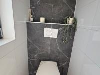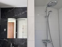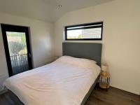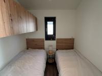 De ouderslaapkamer is ingebouwd over heel de breedte van het chalet waardoor er ruimte is gecreëerd voor ruime inbouwkasten met zelfs plaats voor de wasmachine. De tweede slaapkamer heeft naast goede bedden ook voldoende kastruimte. De badkamer is praktisch ingedeeld met een ruime douchecabine en extra breed toiletmeubel. Het toilet is in een aparte ruimte.