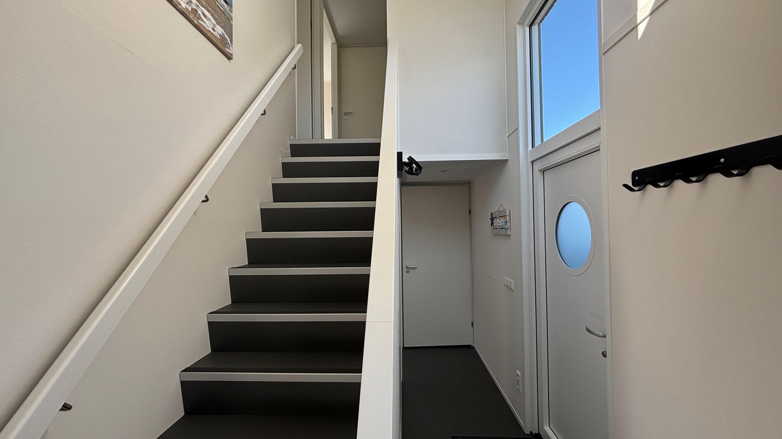 Bij binnenkomst valt direct de ruimtelijkheid op. De open trap en hoge plafonds geven de lodge een lichte en moderne uitstraling. De royale woonkamer met openslaande deuren vormt een perfecte verbinding met het terras en de tuin.