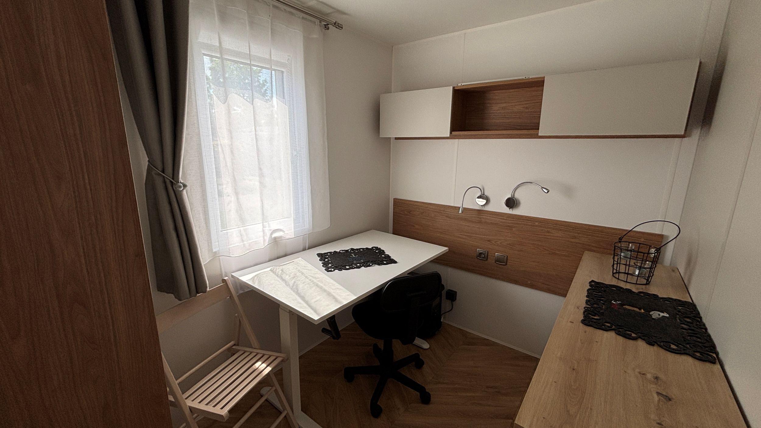 Deze leuke stacaravan staat op een mooie kavel met privacy en goed gelegen op de zon. Als je de Rêve d'été binnenstapt valt het op dat het heel modern en licht is en voorzien van alle luxe die je nodig hebt om met plezier te recreëren. De riante keuken is voorzien van een koel-vriescombinatie, kookplaat, oven, combimagnetron en vaatwasmachine. Er is een eet- en zitgedeelte gecreëerd waar je echt een huiskamer gevoel bij krijgt. Twee van de drie slaapkamers hebben ruime bedden, de derde slaapkamer wordt gebruikt als kantoortje maar kan eenvoudig weer omgebouwd worden. Er zijn maar liefst twee badkamers en een apart toilet.De berging in de tuin is handig om de fietsen en tuingereedschap in op te bergen.