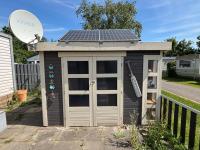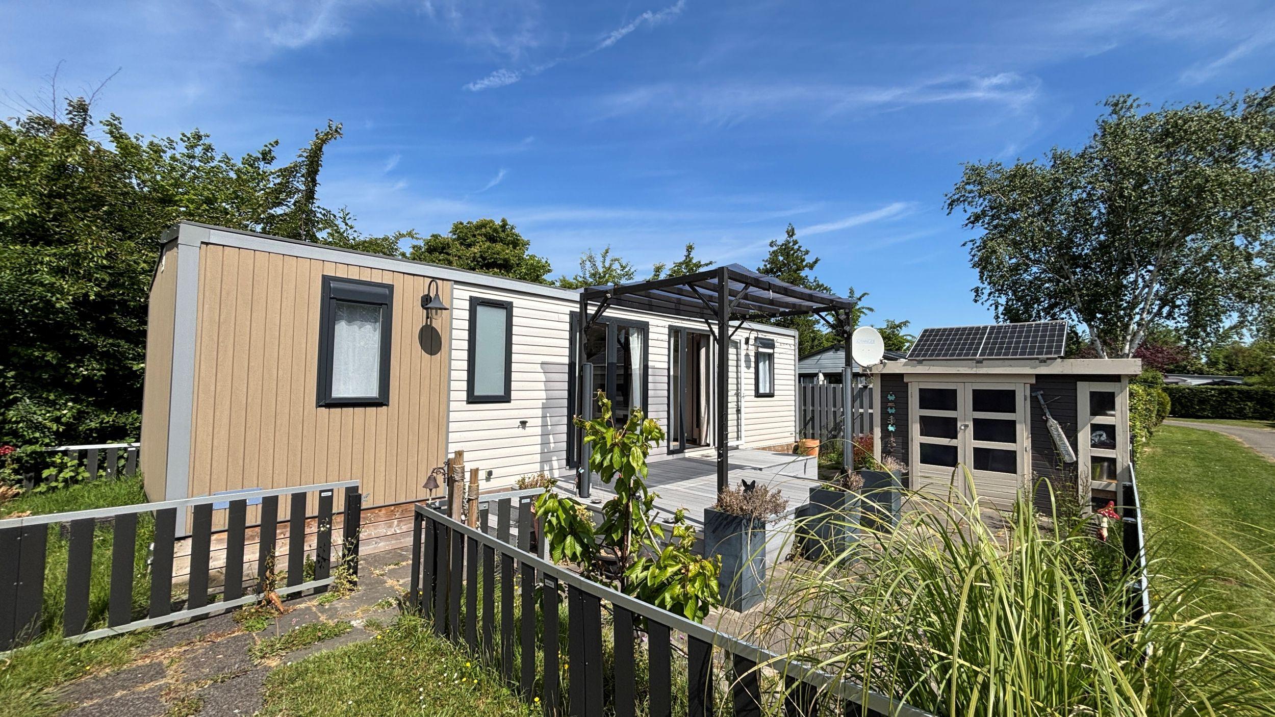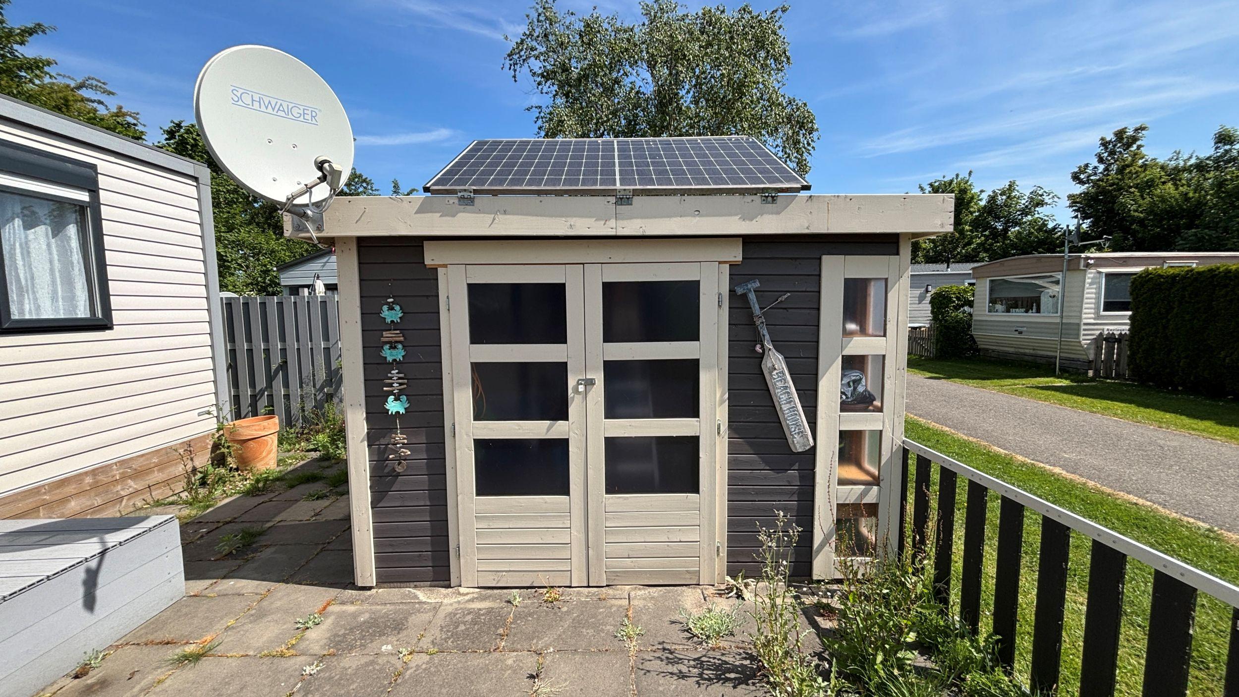 De stacaravan beschikt over twee zonnepanelen en een eigen batterij, een slimme manier om voor eigen gebruik energie op te wekken en geld te besparen.