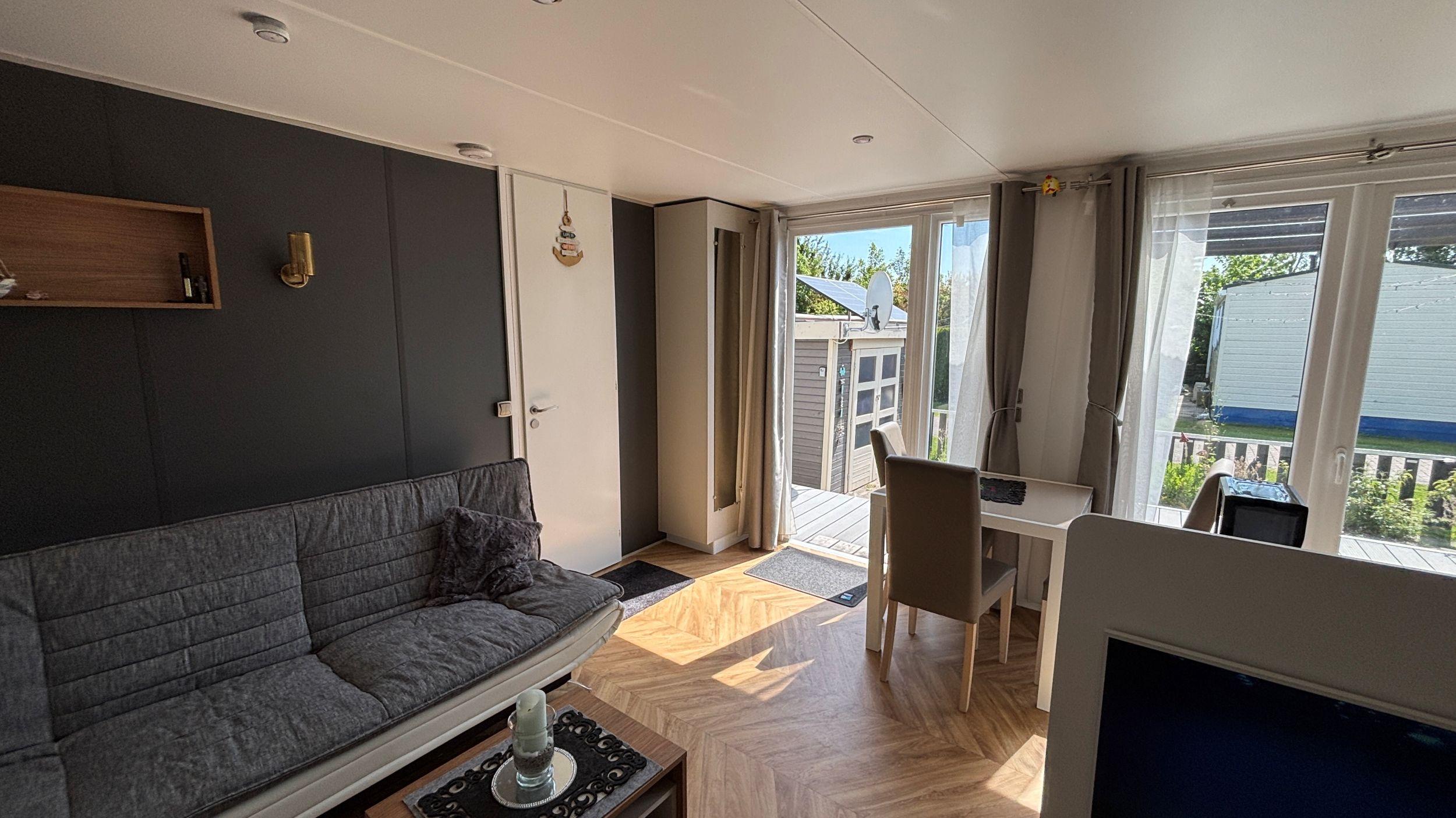 De stacaravan is van binnen en van buiten gezellig en knus. Dit is een hele fijne plek om met de hele familie, de vakanties en vrije weekenden door te brengen.