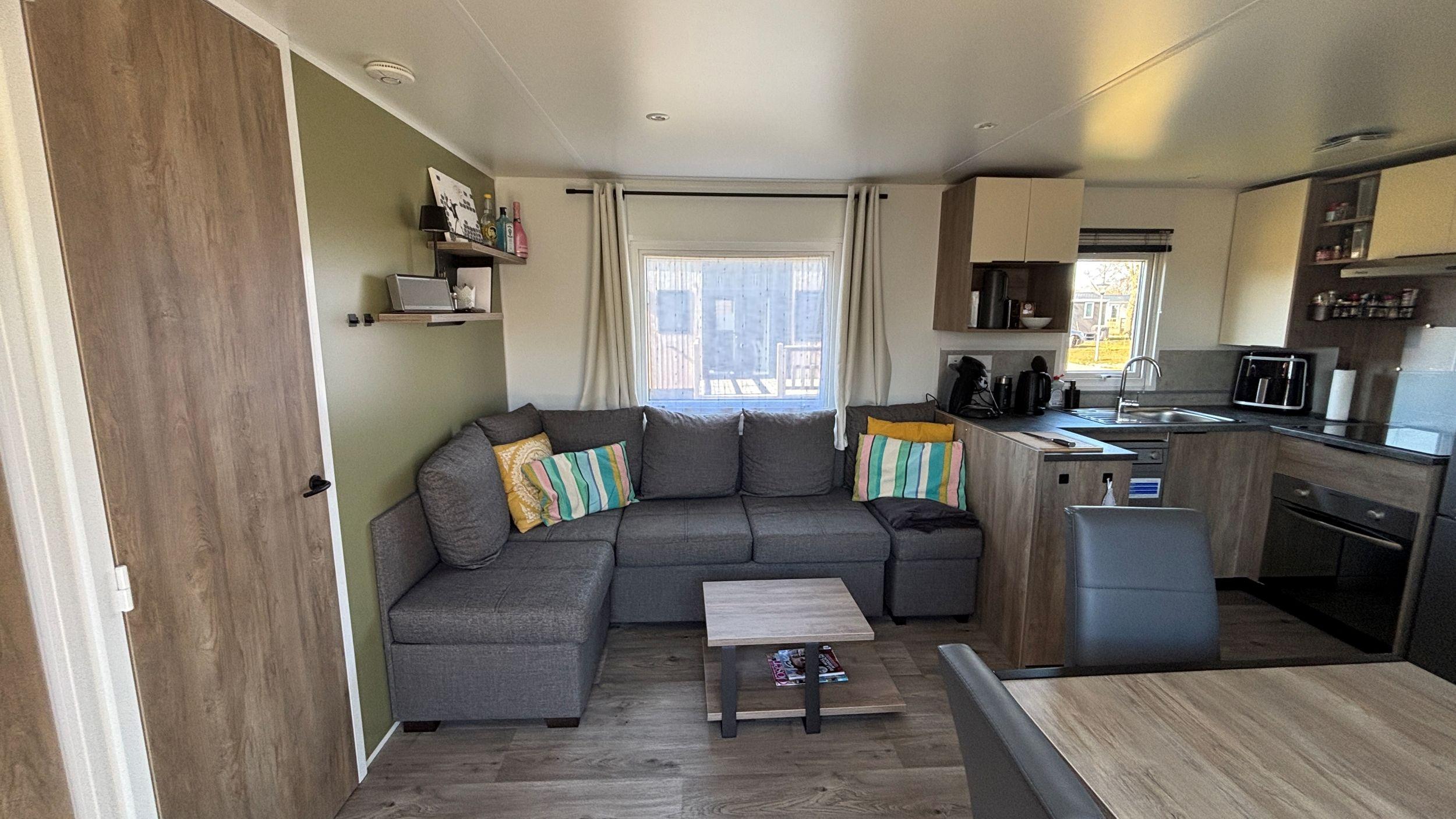 Dit mooie chalet, de Rapidhome Borabora met een ruime veranda, staat op een fijne kavel. Het chalet is zo goed als nieuw en heeft maar liefst drie slaapkamers. De woonkamer heeft een L-vormige bank en een lichte en ruime eethoek. De U-keuken is uitgerust met een oven en vaatwasser en er is veel opbergruimte. Helemaal van deze tijd is de elektrische verwarming en zonnepanelen. Voordeel van de panelen is dat ze op het moment dat ze stroom opwekken en je het gelijk gebruikt, de meter niet loopt.
