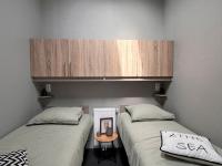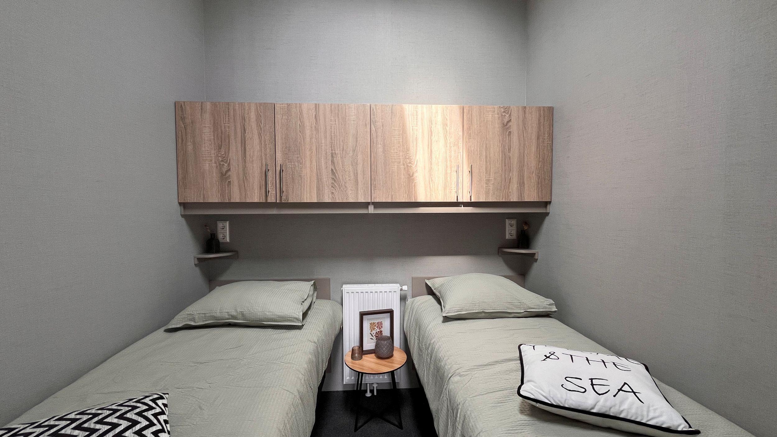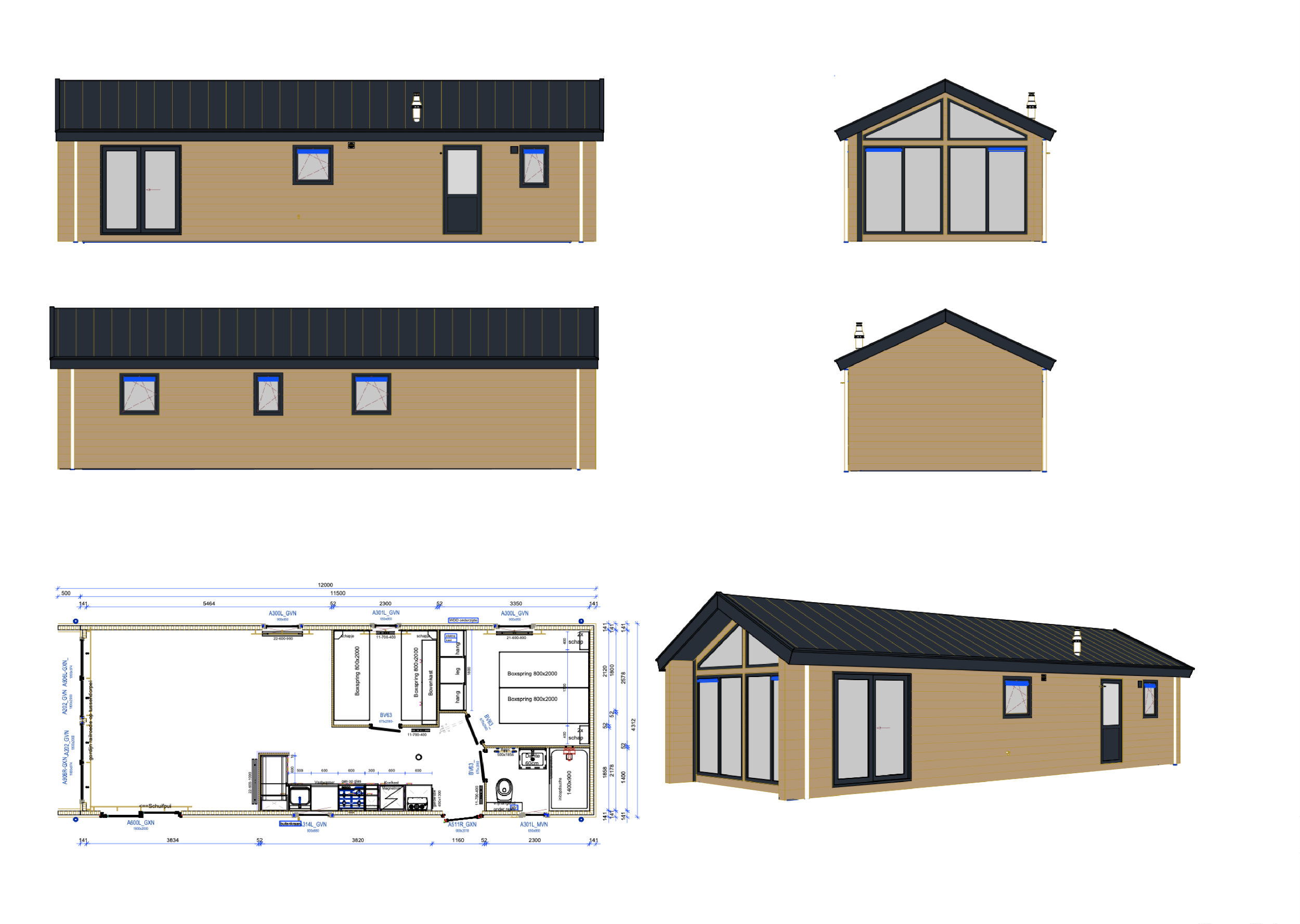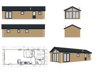 Kavel 8 is vrij gekomen voor een nieuwe Arcabo chalet dat nog naar eigen wens gebouwd wordt. Het voorbeeld chalet heeft een alles behalve standaard indeling, doordat de keuken in het midden staat krijg je aan beide zijden een halletje naar de ouderslaapkamer en badkamer, de tweede slaapkamer ligt achter de keuken en heeft een velux dakraam voor natuurlijk daglicht, ook is deze kamer voorzien van kasten boven het hoofdeinde. De ouderslaapkamer is voorzien van een grote kast en een tweepersoonsbed. De badkamer heeft een douchecabine, badkamermeubel met wastafel en hangtoilet.