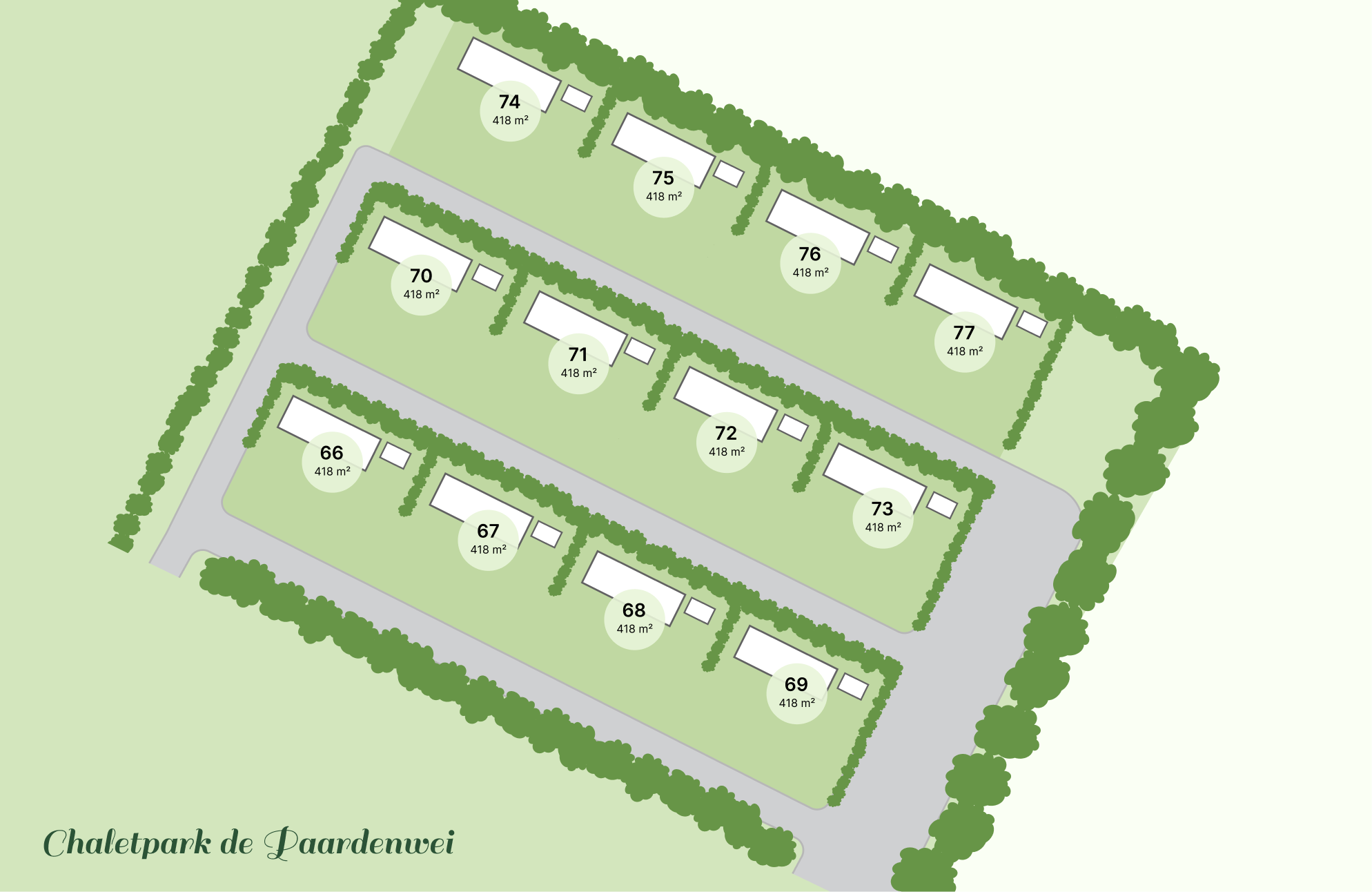 Op de boerderijcamping is een mooi park aangelegd met de toepasselijke naam: Chaletpark de Paardenwei. Het zijn 12 ruime kavels met chalets en stacaravans die van alle luxe voorzien zijn en perfect passen in het natuurlijke landschap.