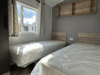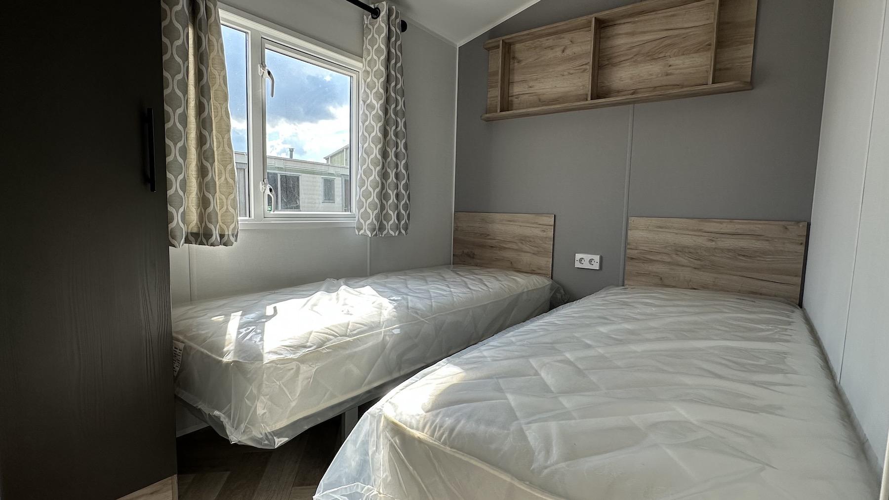 De eerste slaapkamer heeft twee bedden met een hoge opbergkast. De tweede slaapkamer heeft een tweepersoonsbed met een grote opbergkast.