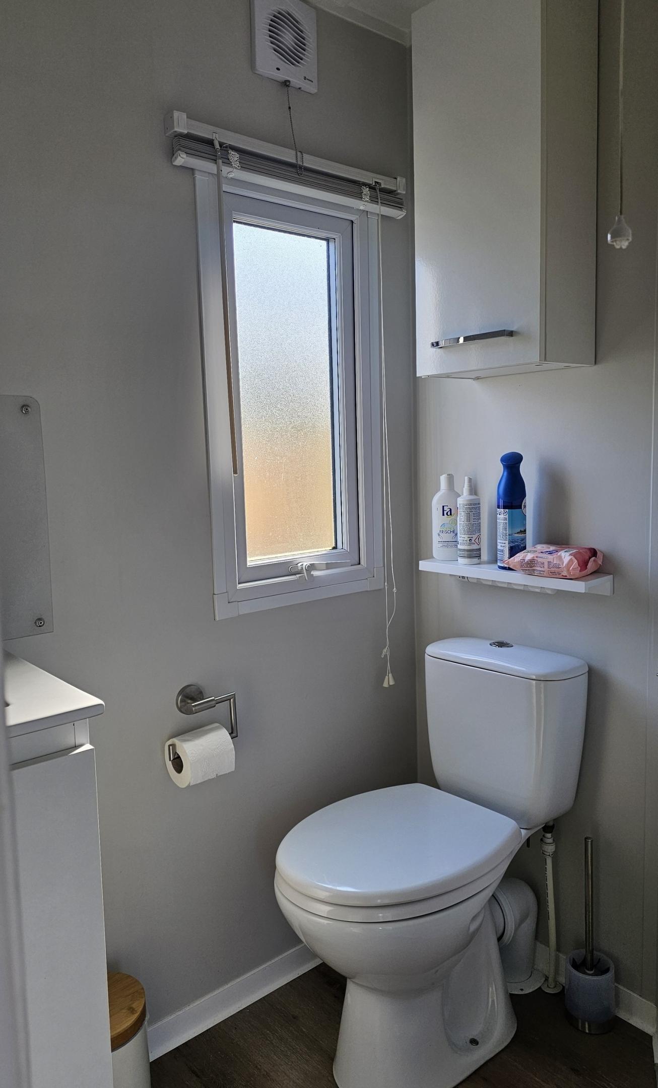 Verder bestaat het chalet uit een badkamer met wastafel, douche en toilet, keuken en een living met meubilair. Het object wordt verwarmd door centrale verwarming.