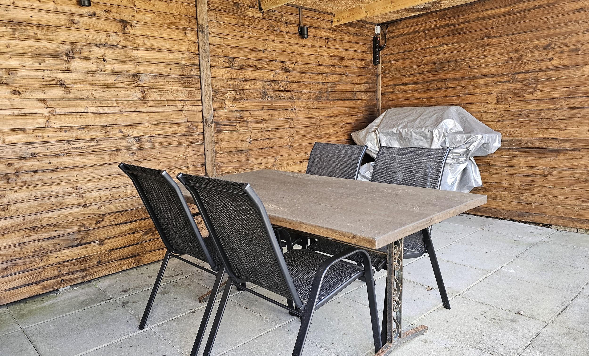 Er is een berging aanwezig met tuingereedschap. Onder de houten overkapping kunt u ook met minder goed weer van het buitenleven genieten.