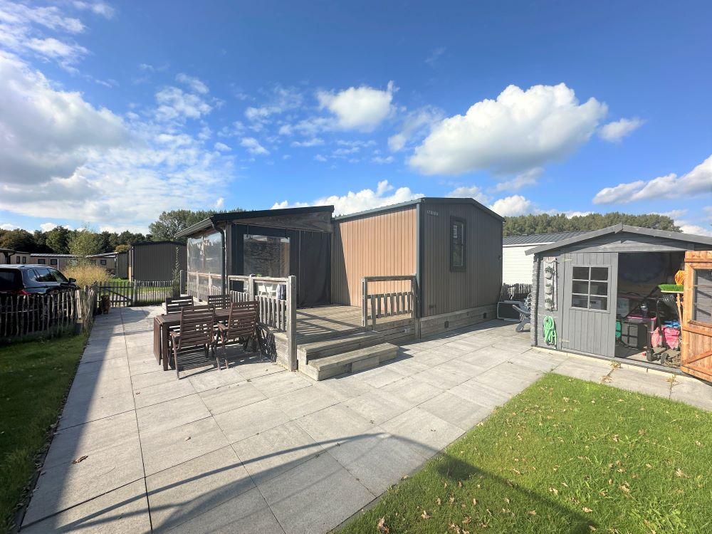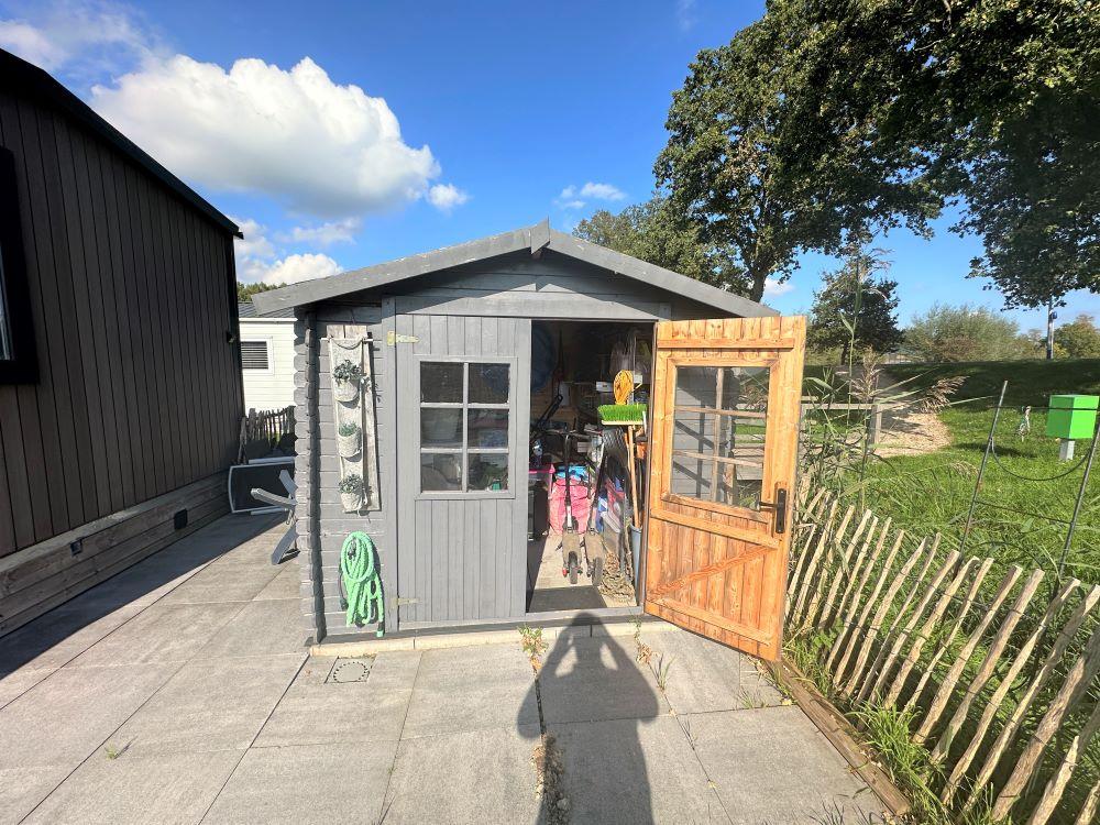 Op de veranda is een serre gemaakt waar u heerlijk overdekt kunt zitten. Daarnaast is er ook nog een ruim betegeld terras met tuinmeubilair waar u kunt genieten van de vakantie. De schuur zorgt voor extra opbergruimte. Bovendien is hier een wasmachine- en drogeraansluiting gerealiseerd. Verder bestaat de tuin uit gazon en is deze omheind.