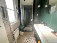 De moderne badkamer ziet er netjes uit en huist een ruime douchecabine en een dubbel wastafel met spiegel. Het toilet bevindt zich separaat in de woning.
