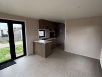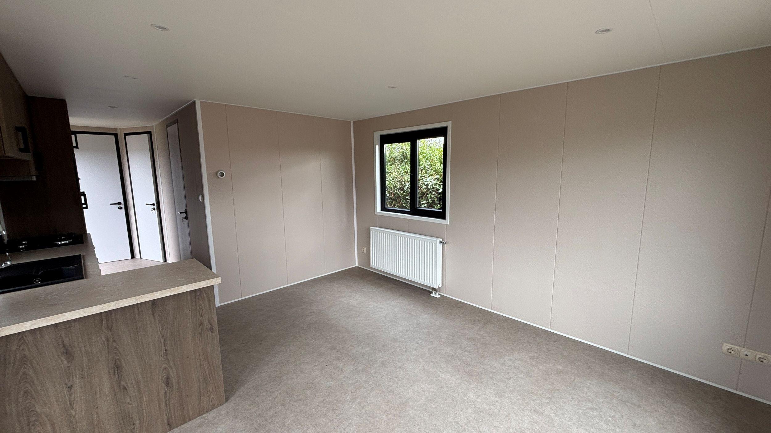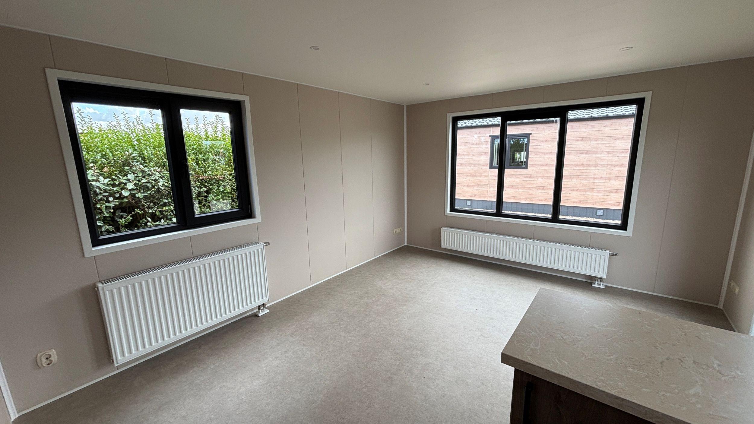 Het chalet Pure dat geplaatst is op kavel 91 heeft een standaardindeling, de slaapkamers, badkamer en keuken compact bij elkaar. Dit creëert een verrassend ruime woonkamer waar je gemakkelijk een comfortabele zithoek en een eethoek voor 4 personen kunt plaatsen.